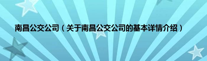 本文关于南昌公交公司的基本详情介绍就讲解完毕,希望对大家有所帮助。