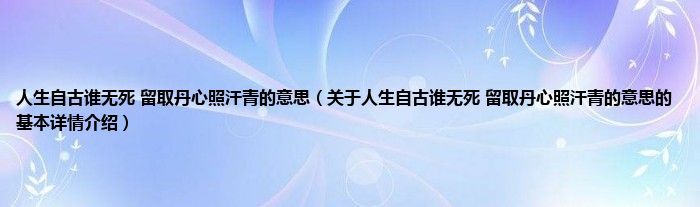 本文关于人生自古谁无死 留取丹心照汗青的意思的基本详情介绍就讲解完毕,希望对大家有所帮助。