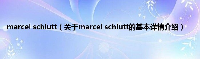 本文关于marcel schlutt的基本详情介绍就讲解完毕,希望对大家有所帮助。