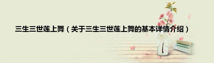 本文关于三生三世莲上舞的基本详情介绍就讲解完毕,希望对大家有所帮助。