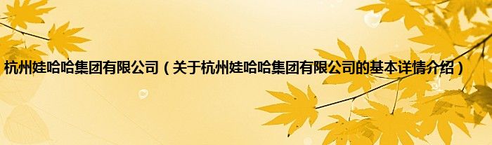 本文关于杭州娃哈哈集团有限公司的基本详情介绍就讲解完毕,希望对大家有所帮助。
