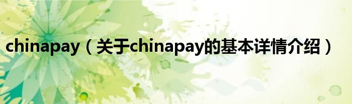 本文关于chinapay的基本详情介绍就讲解完毕,希望对大家有所帮助。