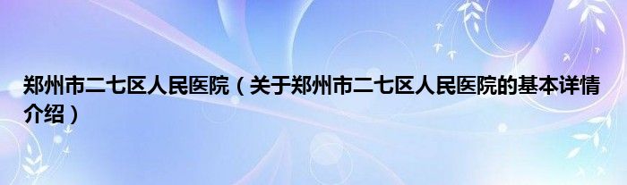本文关于郑州市二七区人民医院的基本详情介绍就讲解完毕,希望对大家有所帮助。