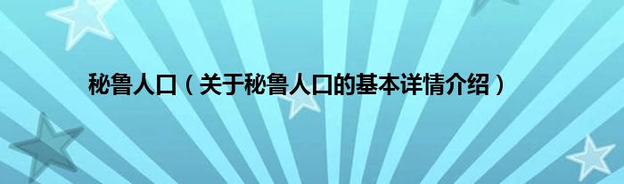 本文关于秘鲁人口的基本详情介绍就讲解完毕,希望对大家有所帮助。