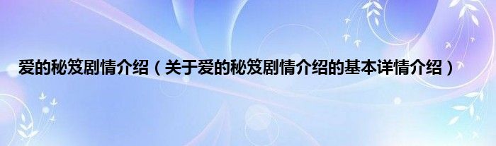 本文关于爱的秘笈剧情介绍的基本详情介绍就讲解完毕,希望对大家有所帮助。