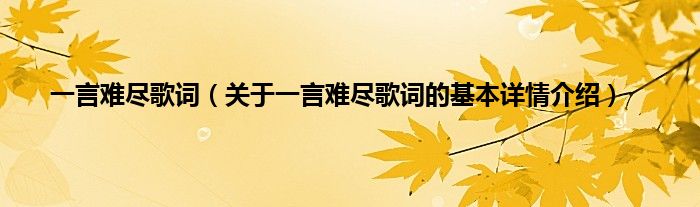 本文关于一言难尽歌词的基本详情介绍就讲解完毕,希望对大家有所帮助。
