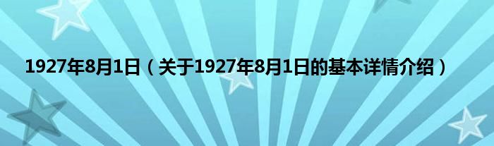 本文关于1927年8月1日的基本详情介绍就讲解完毕,希望对大家有所帮助。