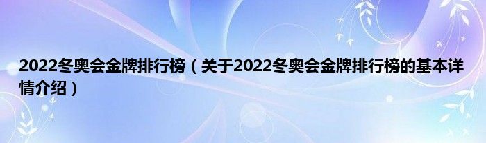本文关于2022冬奥会金牌排行榜的基本详情介绍就讲解完毕,希望对大家有所帮助。