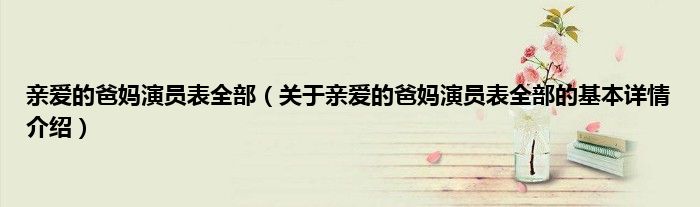 本文关于亲爱的爸妈演员表全部的基本详情介绍就讲解完毕,希望对大家有所帮助。