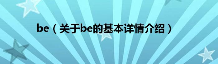 本文关于be的基本详情介绍就讲解完毕,希望对大家有所帮助。