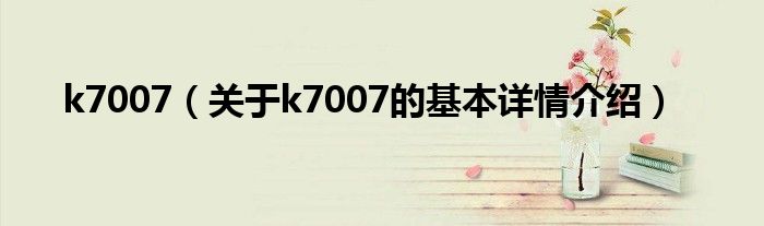 本文关于k7007的基本详情介绍就讲解完毕,希望对大家有所帮助。