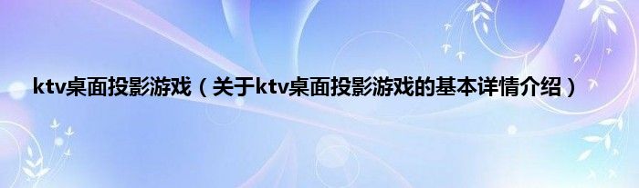 本文关于ktv桌面投影游戏的基本详情介绍就讲解完毕,希望对大家有所帮助。
