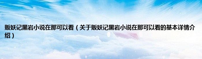 本文关于贩妖记黑岩小说在那可以看的基本详情介绍就讲解完毕,希望对大家有所帮助。