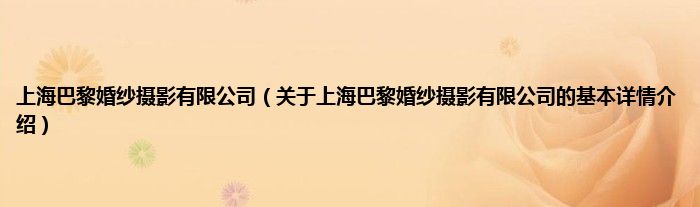 上海巴黎婚纱摄影有限公司(关于上海巴黎婚纱摄影有限公司的基本详情介绍)