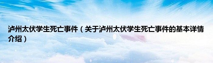 本文关于泸州太伏学生死亡事件的基本详情介绍就讲解完毕,希望对大家有所帮助。