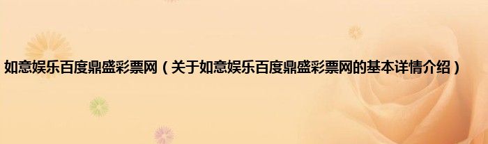 本文关于如意娱乐百度鼎盛彩票网的基本详情介绍就讲解完毕,希望对大家有所帮助。