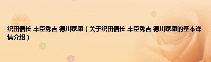 本文关于织田信长 丰臣秀吉 德川家康的基本详情介绍就讲解完毕,希望对大家有所帮助。