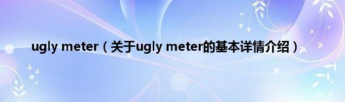 大家好我是小蝌蚪,ugly meter,关于ugly meter的基本详情介绍很多人还不知道,那么现在让我们一起来看看吧!
