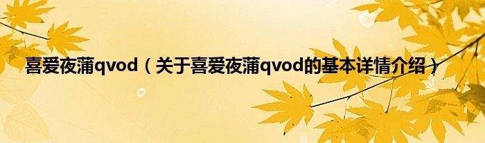 本文关于喜爱夜蒲qvod的基本详情介绍就讲解完毕,希望对大家有所帮助。