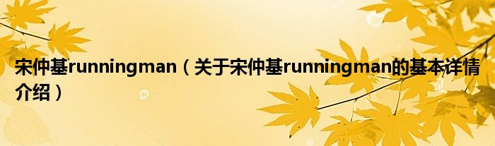 本文关于宋仲基runningman的基本详情介绍就讲解完毕,希望对大家有所帮助。
