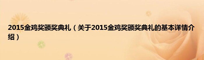 本文关于2015金鸡奖颁奖典礼的基本详情介绍就讲解完毕,希望对大家有所帮助。