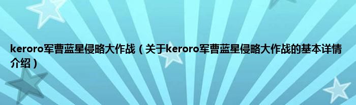 本文关于keroro军曹蓝星侵略大作战的基本详情介绍就讲解完毕,希望对大家有所帮助。