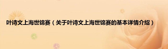 本文关于叶诗文上海世锦赛的基本详情介绍就讲解完毕,希望对大家有所帮助。