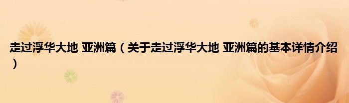 本文关于走过浮华大地 亚洲篇的基本详情介绍就讲解完毕,希望对大家有所帮助。