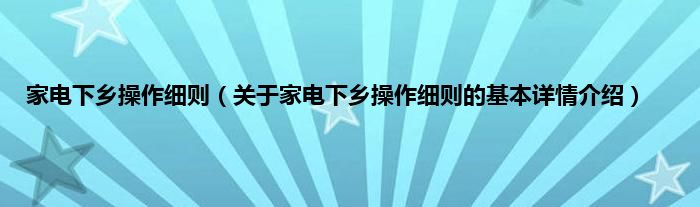 本文关于家电下乡操作细则的基本详情介绍就讲解完毕,希望对大家有所帮助。
