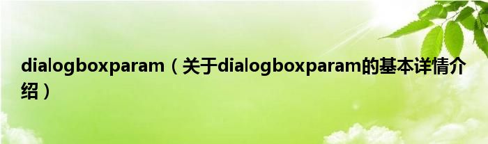 dialogboxparam(关于dialogboxparam的基本详情介绍)