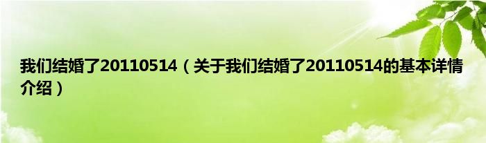本文关于我们结婚了20110514的基本详情介绍就讲解完毕,希望对大家有所帮助。