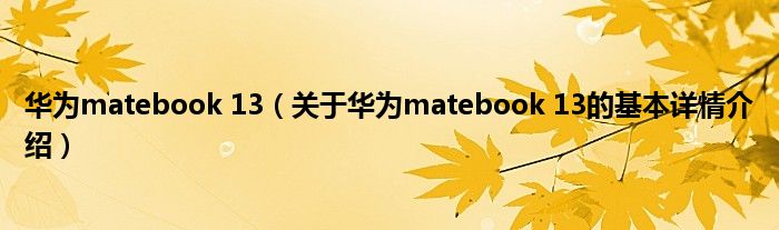 本文关于华为matebook 13的基本详情介绍就讲解完毕,希望对大家有所帮助。