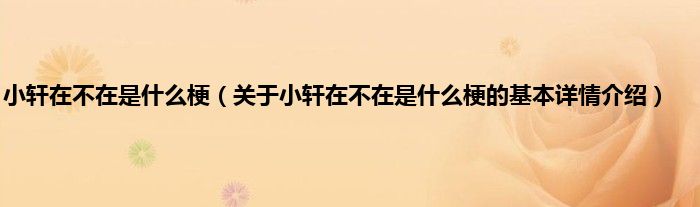 本文关于小轩在不在是什么梗的基本详情介绍就讲解完毕,希望对大家有所帮助。