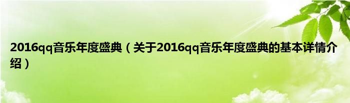 本文关于2016qq音乐年度盛典的基本详情介绍就讲解完毕,希望对大家有所帮助。