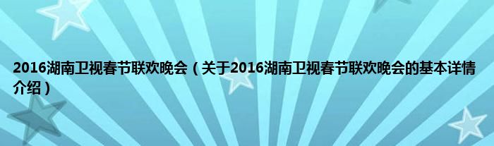 本文关于2016湖南卫视春节联欢晚会的基本详情介绍就讲解完毕,希望对大家有所帮助。
