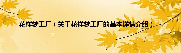 本文关于花样梦工厂的基本详情介绍就讲解完毕,希望对大家有所帮助。