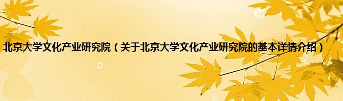 本文关于北京大学文化产业研究院的基本详情介绍就讲解完毕,希望对大家有所帮助。