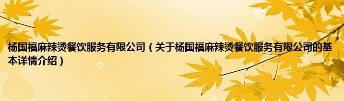 本文关于杨国福麻辣烫餐饮服务有限公司的基本详情介绍就讲解完毕,希望对大家有所帮助。