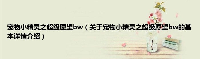 本文关于宠物小精灵之超级愿望bw的基本详情介绍就讲解完毕,希望对大家有所帮助。