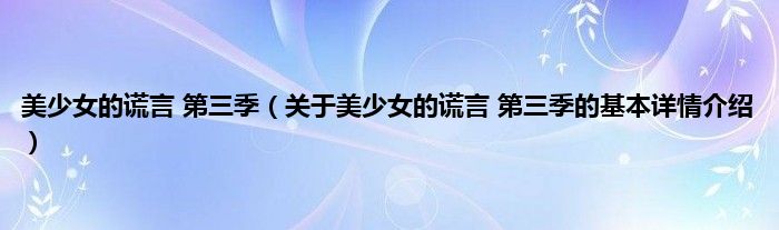 本文关于美少女的谎言 第三季的基本详情介绍就讲解完毕,希望对大家有所帮助。