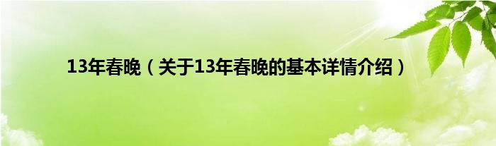 本文关于13年春晚的基本详情介绍就讲解完毕,希望对大家有所帮助。
