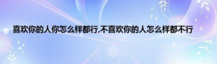 大家好,小问来为大家解答以上问题。喜欢你的人你怎么样都行,不喜欢你的人怎么样都不行这个很多人还不知道,现在让我们一起来看看吧!