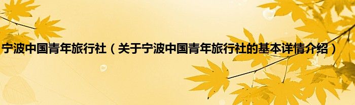 本文关于宁波中国青年旅行社的基本详情介绍就讲解完毕,希望对大家有所帮助。