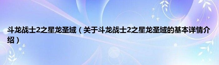 本文关于斗龙战士2之星龙圣域的基本详情介绍就讲解完毕,希望对大家有所帮助。