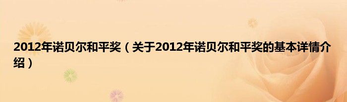 本文关于2012年诺贝尔和平奖的基本详情介绍就讲解完毕,希望对大家有所帮助。