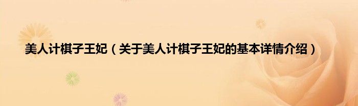 本文关于美人计棋子王妃的基本详情介绍就讲解完毕,希望对大家有所帮助。