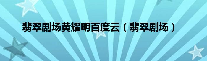 大家好,小问来为大家解答以上问题。翡翠剧场黄耀明百度云,翡翠剧场这个很多人还不知道,现在让我们一起来看看吧!