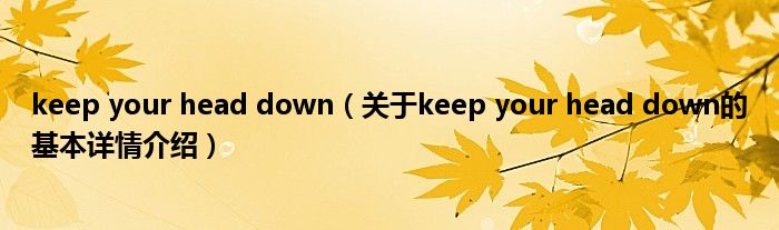 本文关于keep your head down的基本详情介绍就讲解完毕,希望对大家有所帮助。