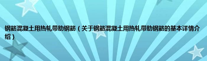 本文关于钢筋混凝土用热轧带肋钢筋的基本详情介绍就讲解完毕,希望对大家有所帮助。