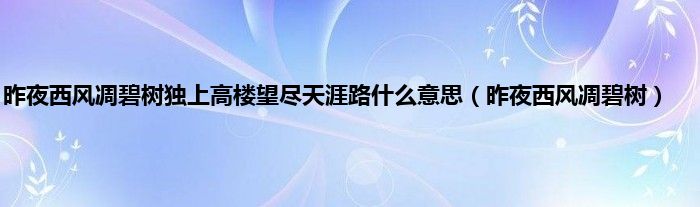以上就是【昨夜西风凋碧树独上高楼望尽天涯路什么意思,昨夜西风凋碧树】相关内容。
